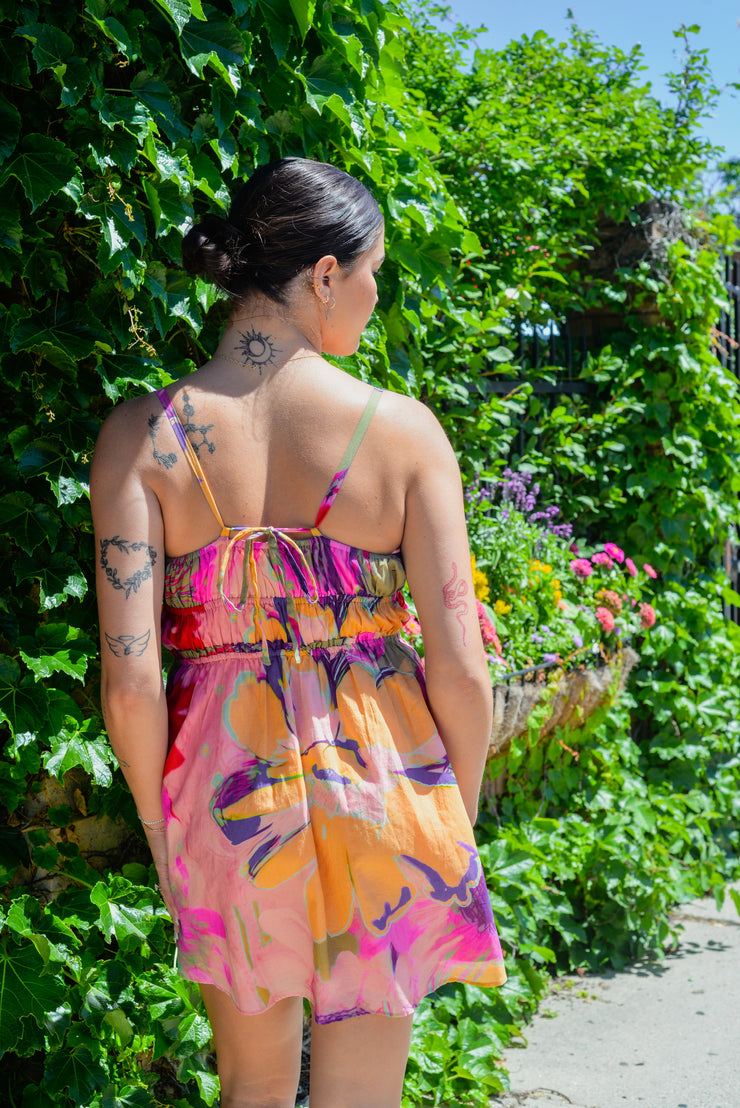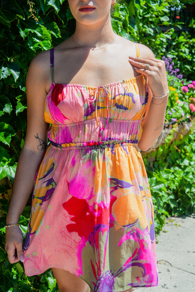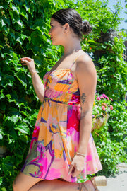 This mini is so cute, summery & comfortable! Very stretchy, you could size down! Adjustable tie straps. Model in size small!