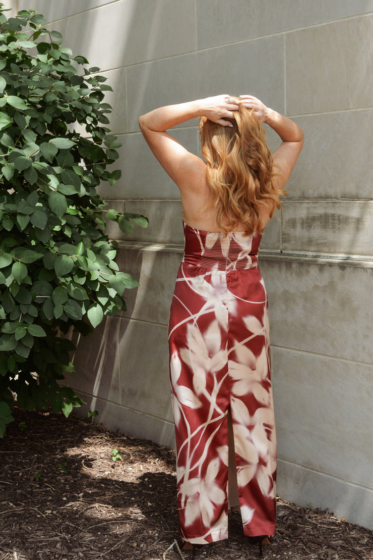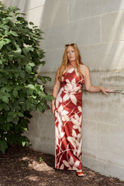Oh you need to turn heads at an event? This Steve Madden maxi is the answer. Heavy silk, stretch back with zipper closure. Adjustable halter tie. Model in size 8.