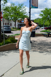 This floral corset mini dress is cute, flattering and so perfect for this season! Zipper back closure. Model in size small.